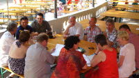Unser Klassentreffen haben wir mit einem Rundgang durch unsere alte Schule begonnen. Obwohl sich viel verändert hat, wurden beim Gang durch die ehemaligen Unterrichtsräume bei vielen Erinnerungen wach und die eine oder andere Anekdote wurde erzählt. Danach ging es auf den Konzertplatz am weißen Hirsch, wo wir uns bei bestem Wetter und kühlen Getränken weiter über Altes und Neues austauschten. Zum Schluss des Tages ging es in der Nähe des “Blauen Wunders” in den Biergarten des “Ristorante e Pensione La Campagnola”. Dort gesellten sich dann auch noch ein paar Schüler und auch ehemalige Lehrer zu uns. |